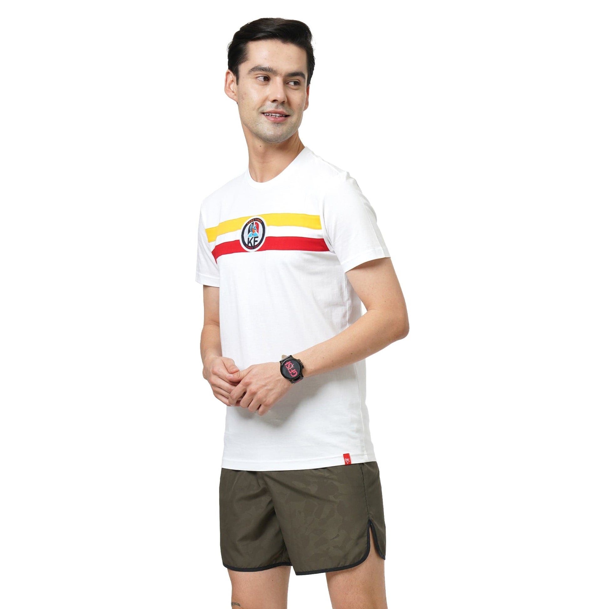 Inspired by motosport, this cut & sew tee is a statement piece featuring a cool colour block style with a chest badge. Pair it with shorts or jeans and live it up in the fast lane.