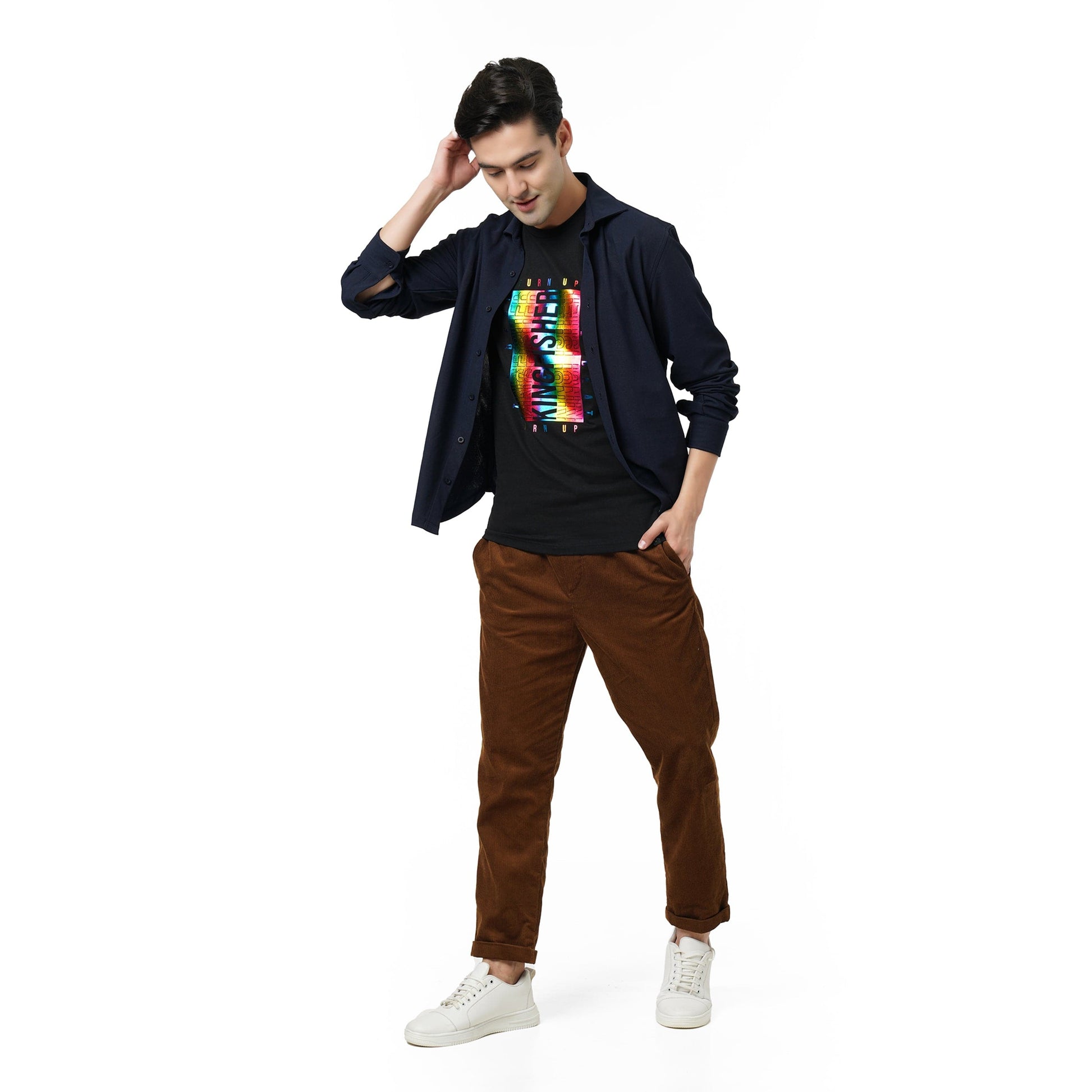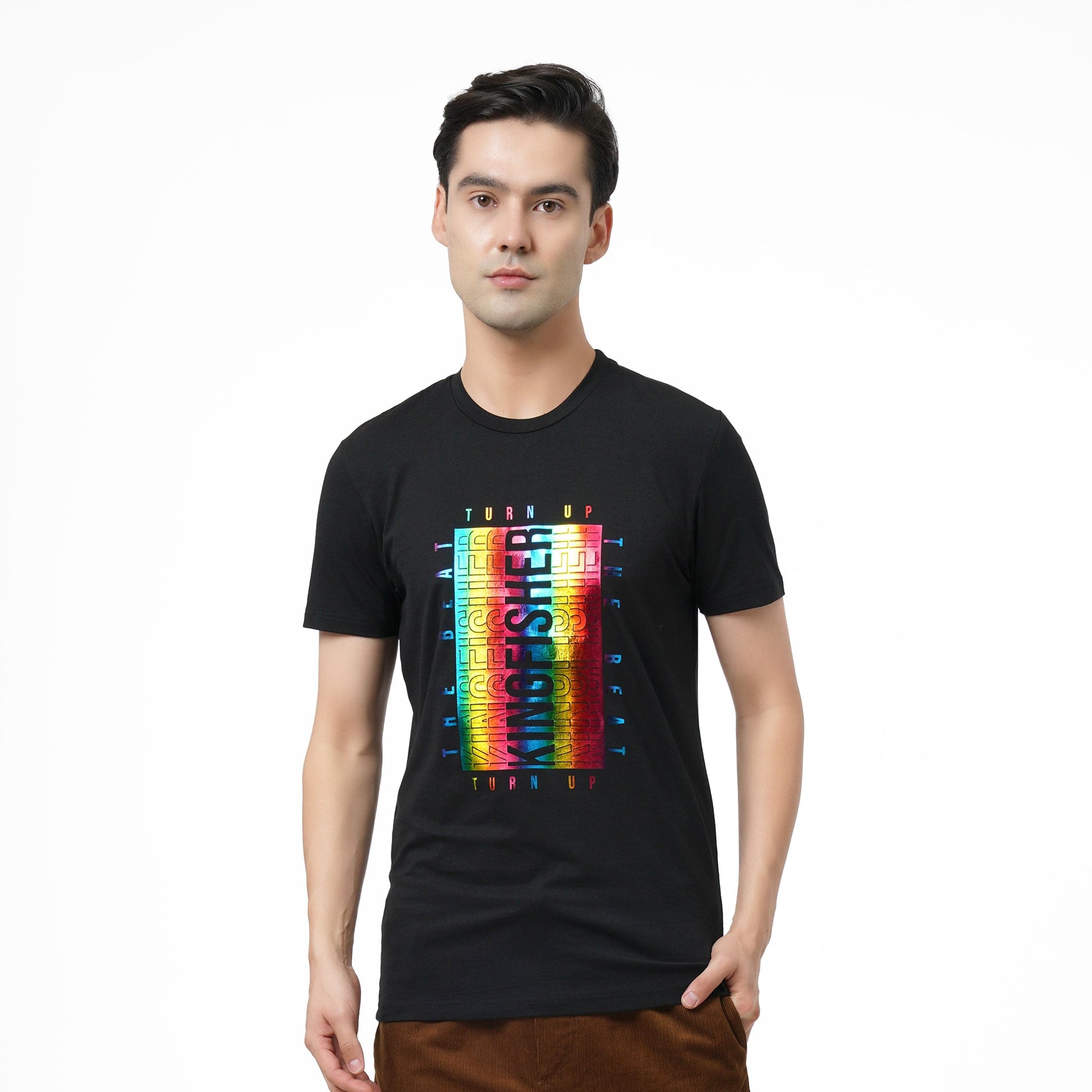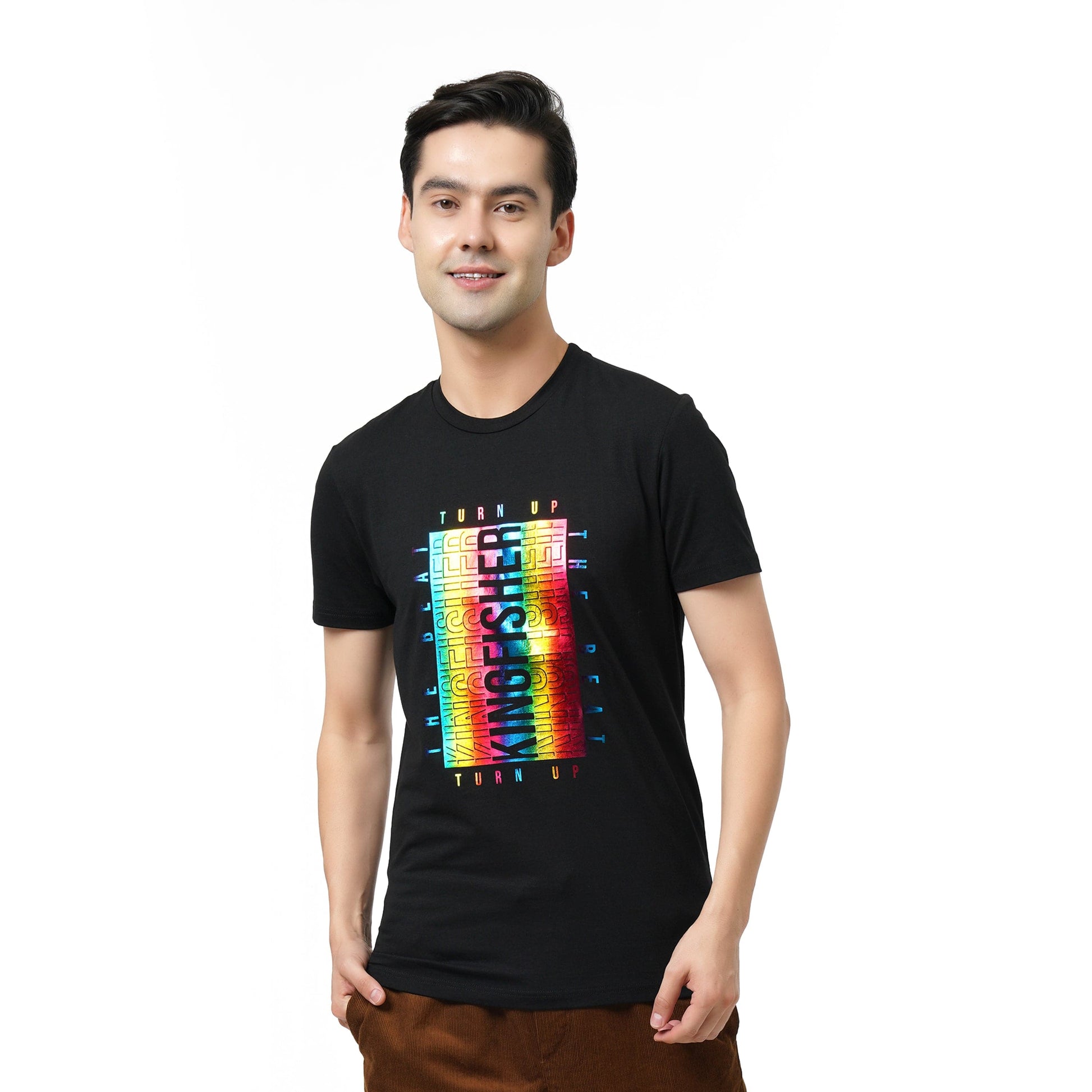 Make heads turn and be the talk of the party in this Rainbow Foil print t-shirt from KF.LIFE. Made from soft cotton. Wear with a pair of blue jeans and white sneakers and you are ready to party.