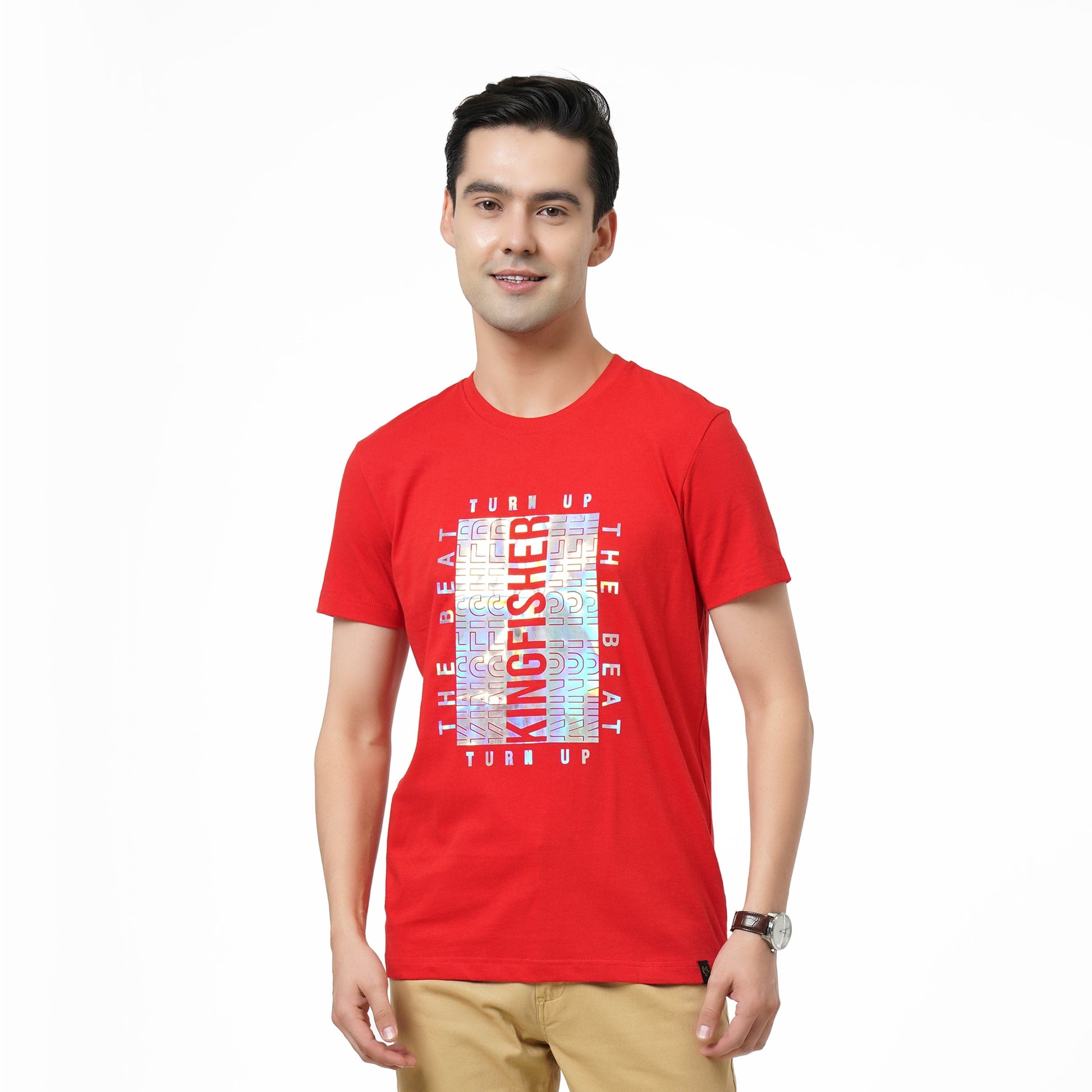 Make heads turn and be the talk of the party in this iridescent silver foil print t-shirt from KF.LIFE. Made from soft cotton. Wear with a pair of blue jeans and white sneakers and you are ready to party.