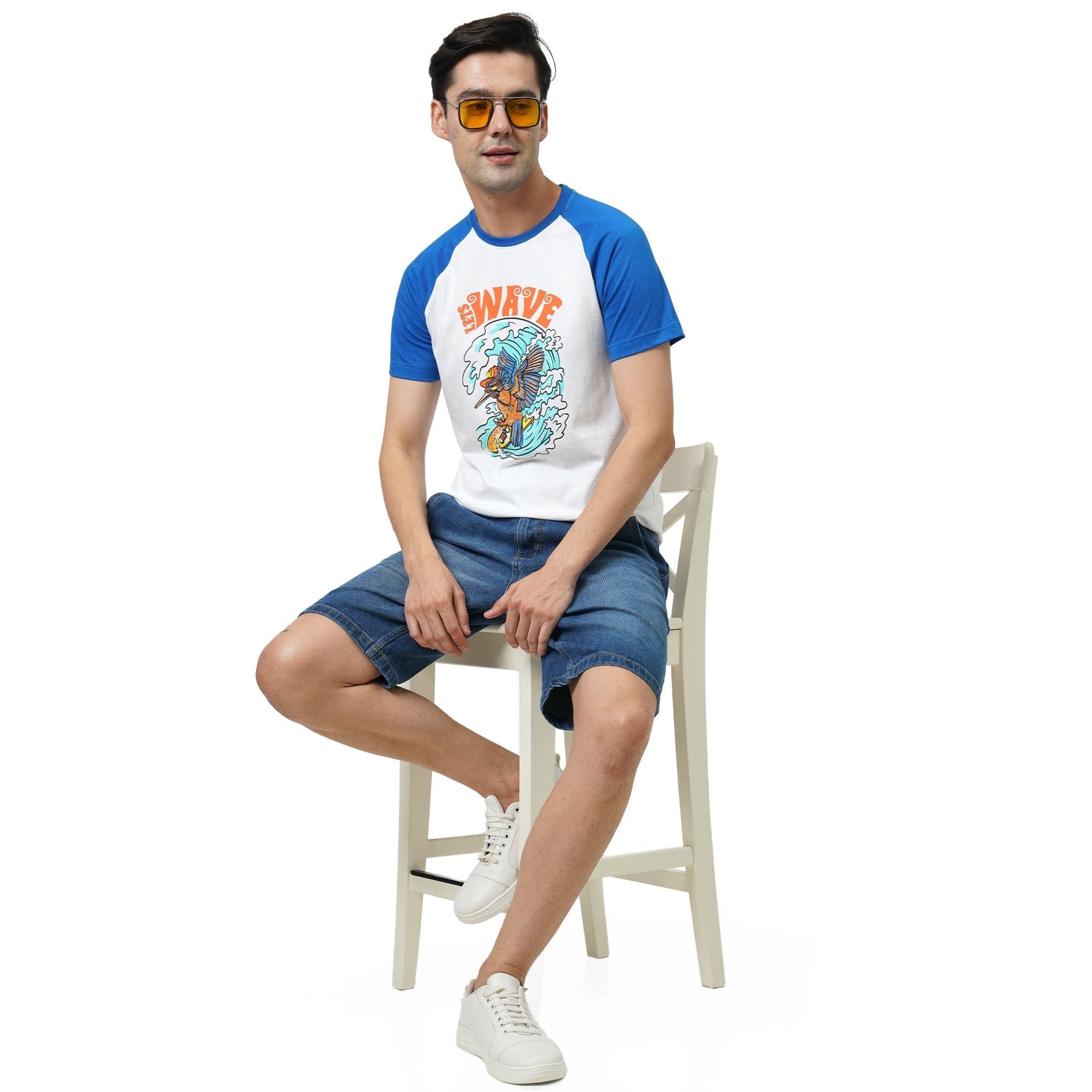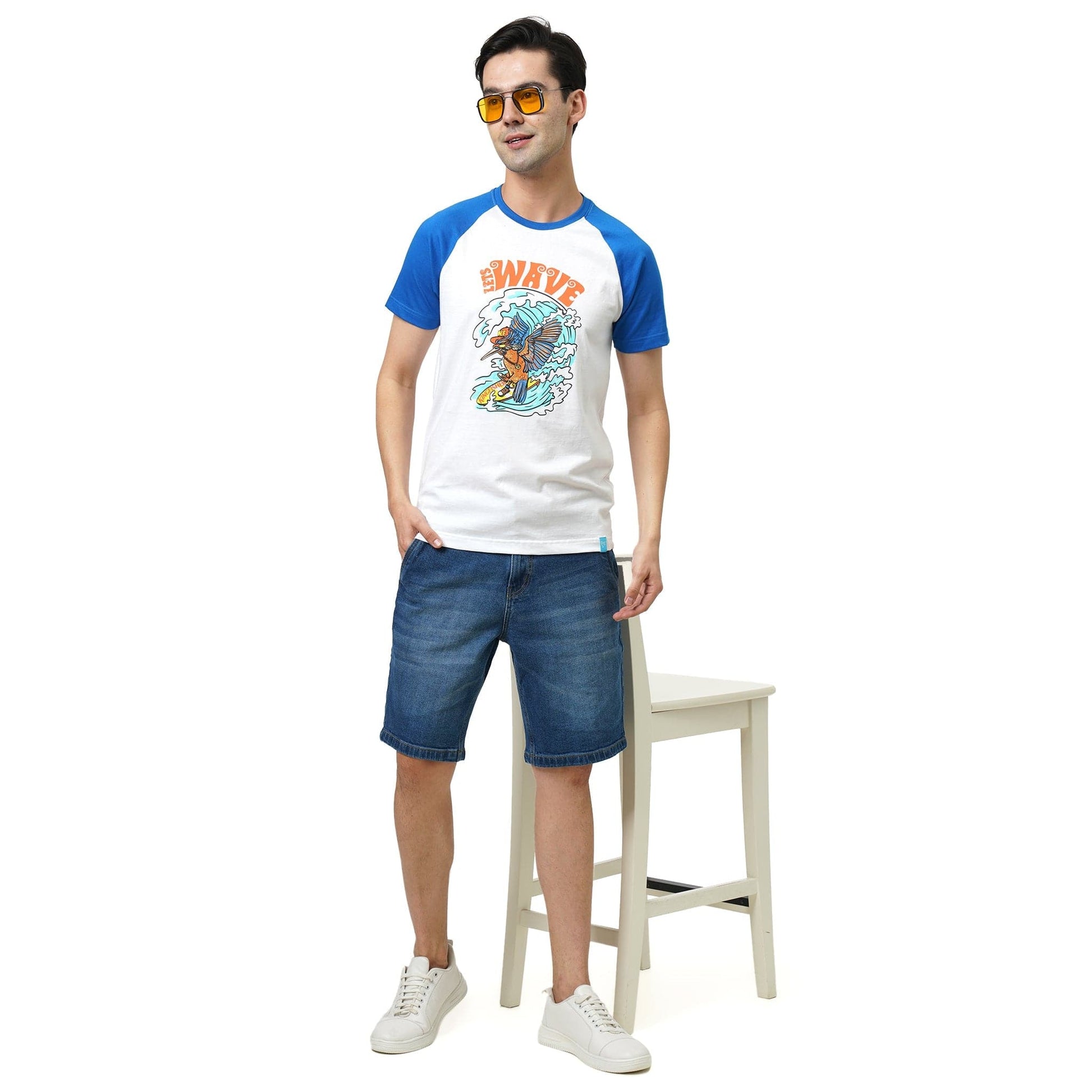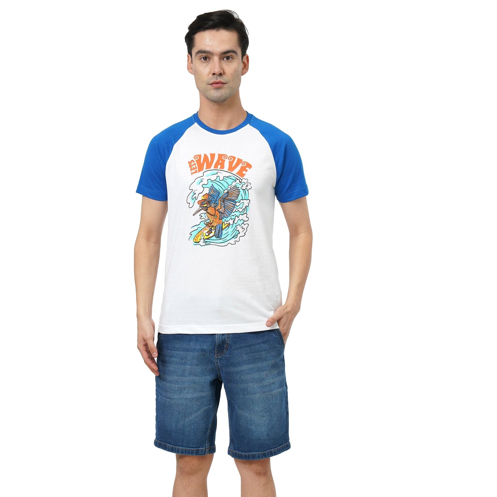 Ride your vacation wave in style with this quirky chest graphic tee and solid raglan sleeves to elevate your style. Made from soft cotton, this is an extremely versatile t-shirt featuring the cool KF.LIFE bird surfing like a boss! Pair it with jeans or shorts and flaunt your chill vibes.