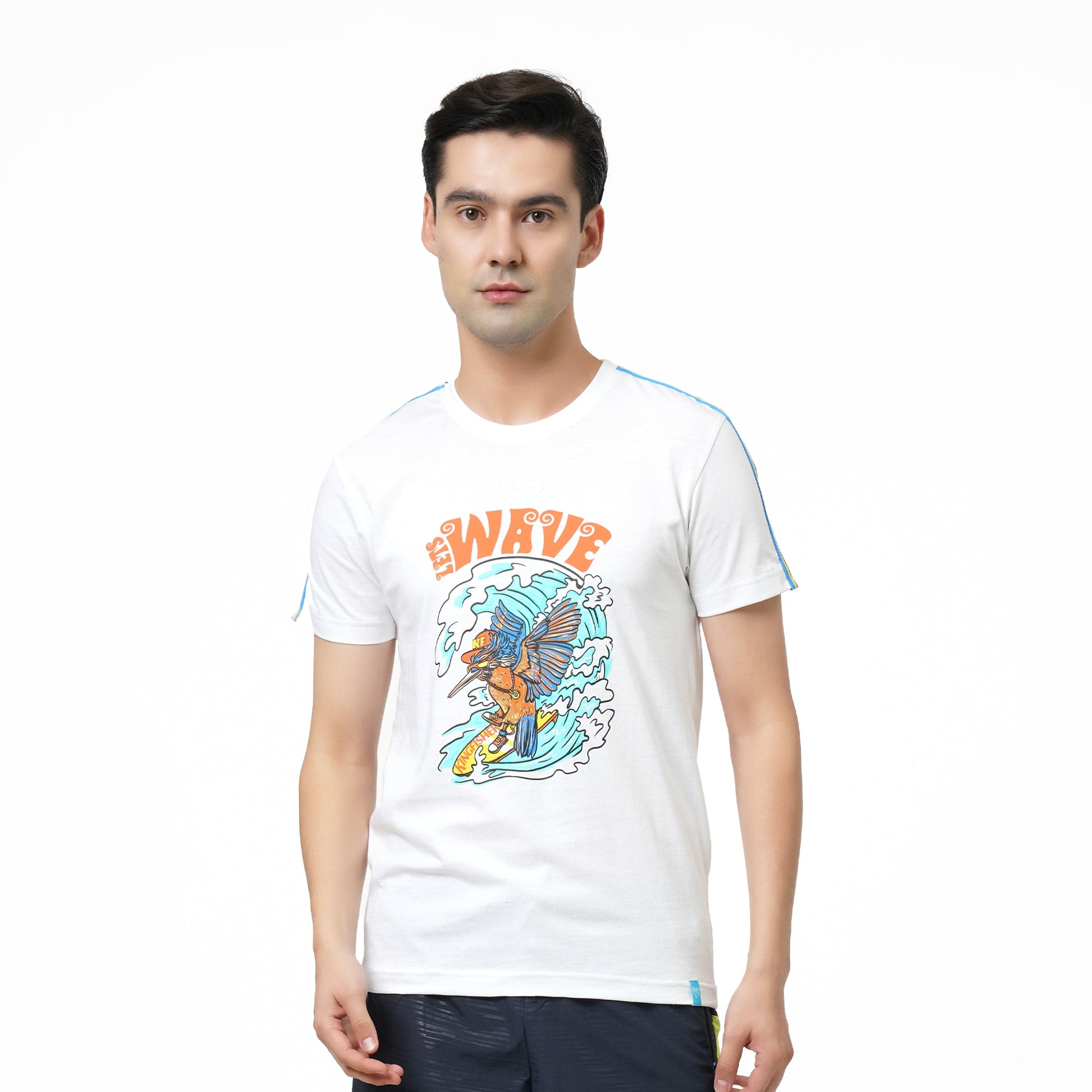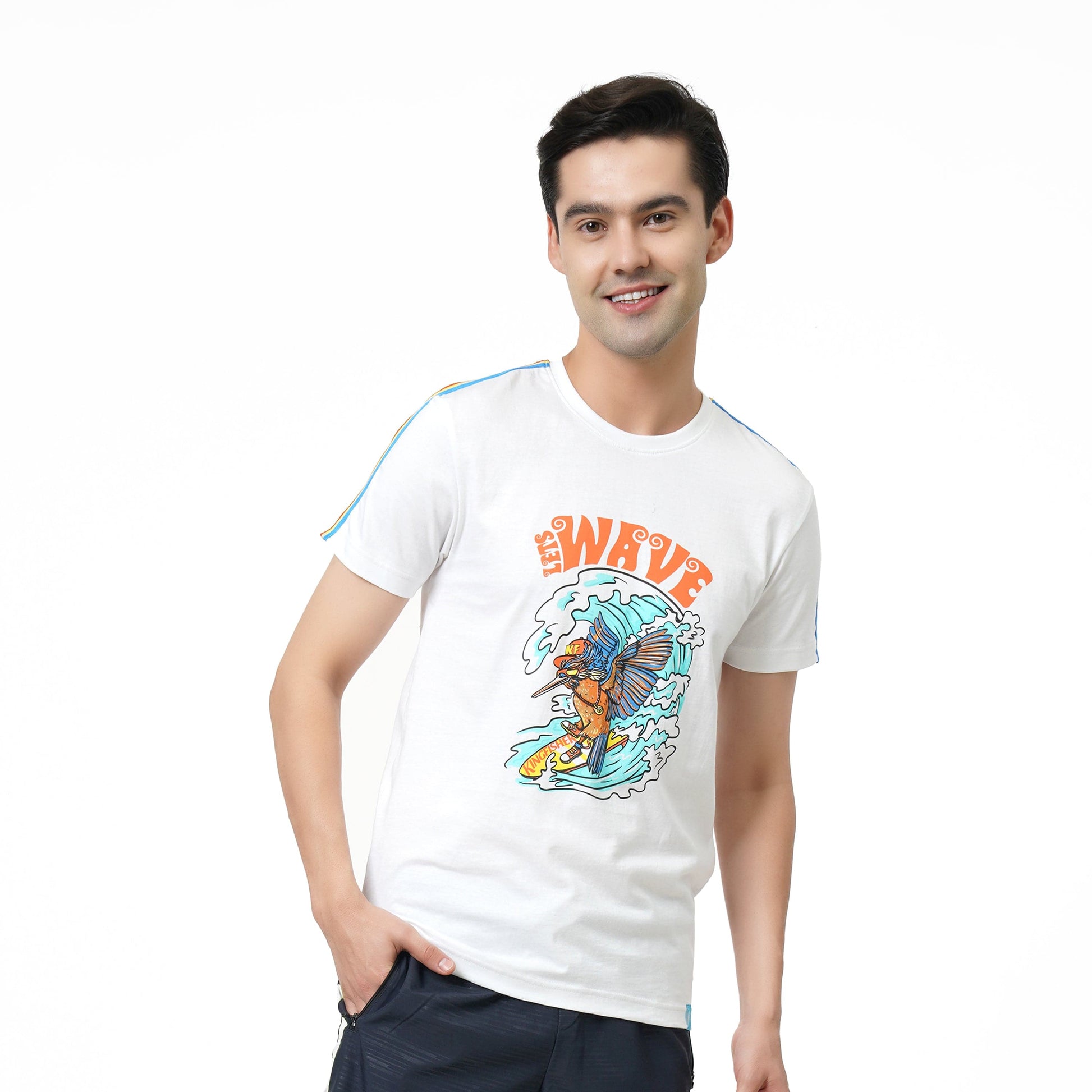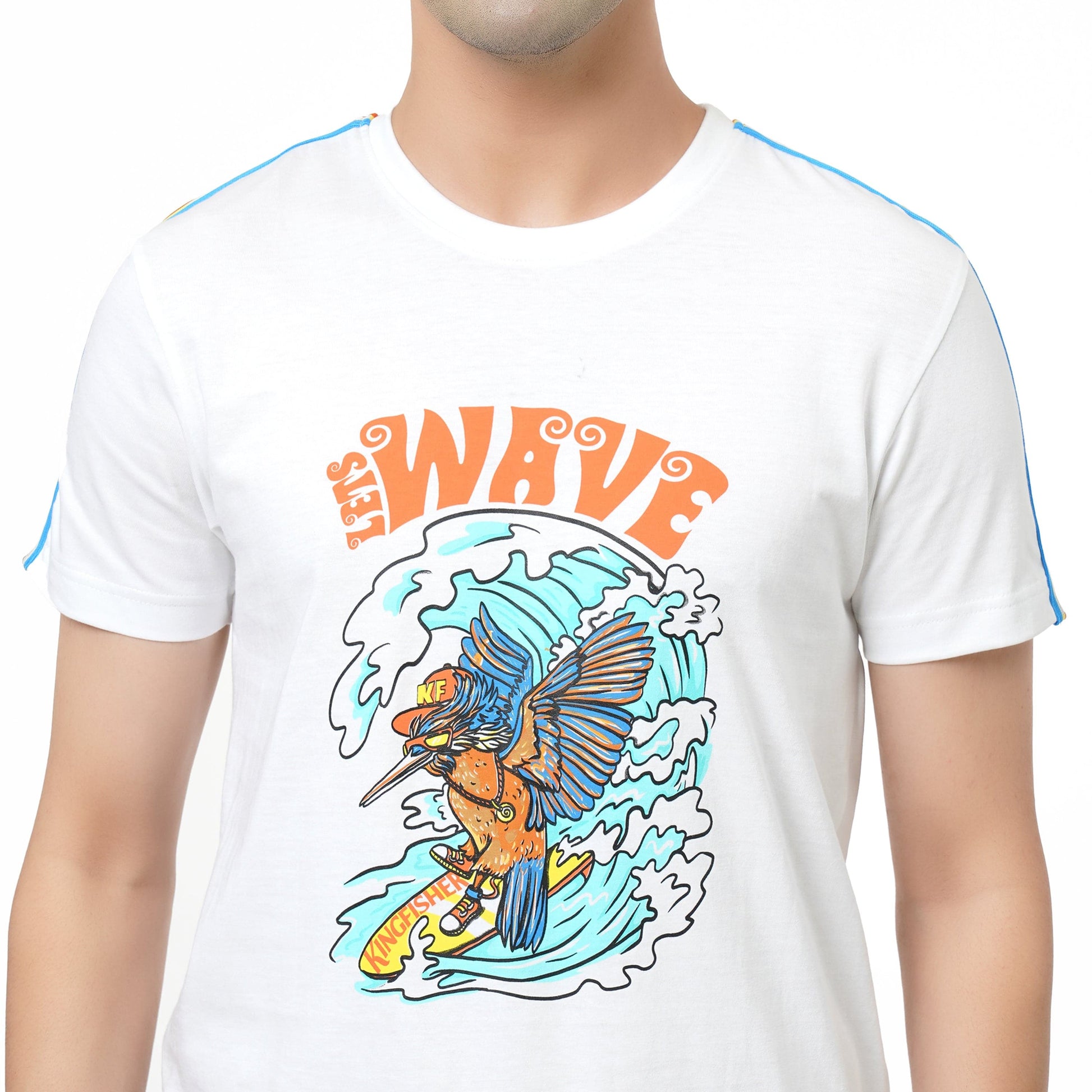 Ride your vacation wave in style with this quirky chest graphic tee and a cool tape detail on the shoulder. Made from soft cotton, this is an extremely versatile t-shirt featuring the cool KF.LIFE bird surfing like a boss! Pair it with jeans or shorts and flaunt your chill vibes.