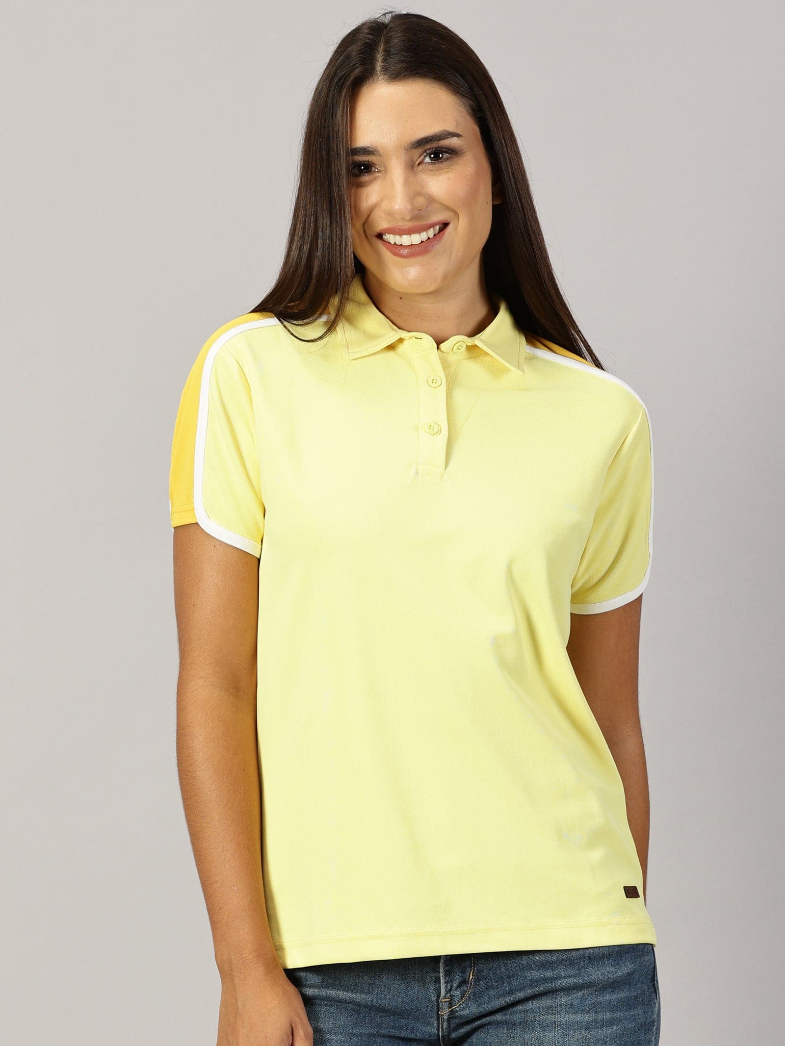 KF WOMEN'S YELLOW REGULAR FIT SPORTS POLO T-SHIRT