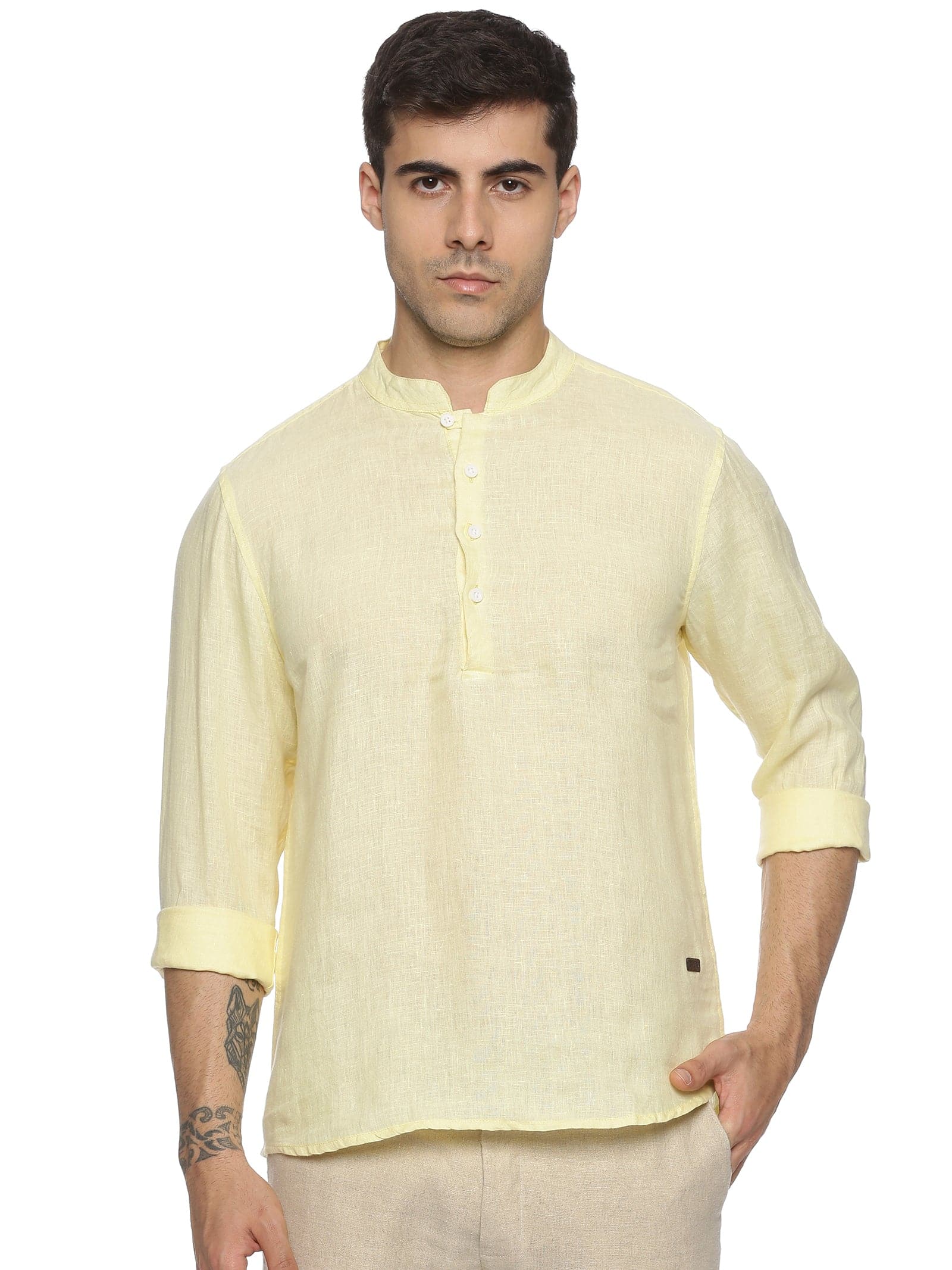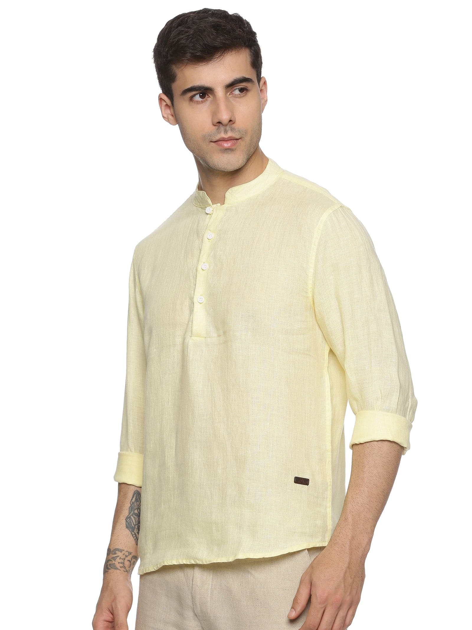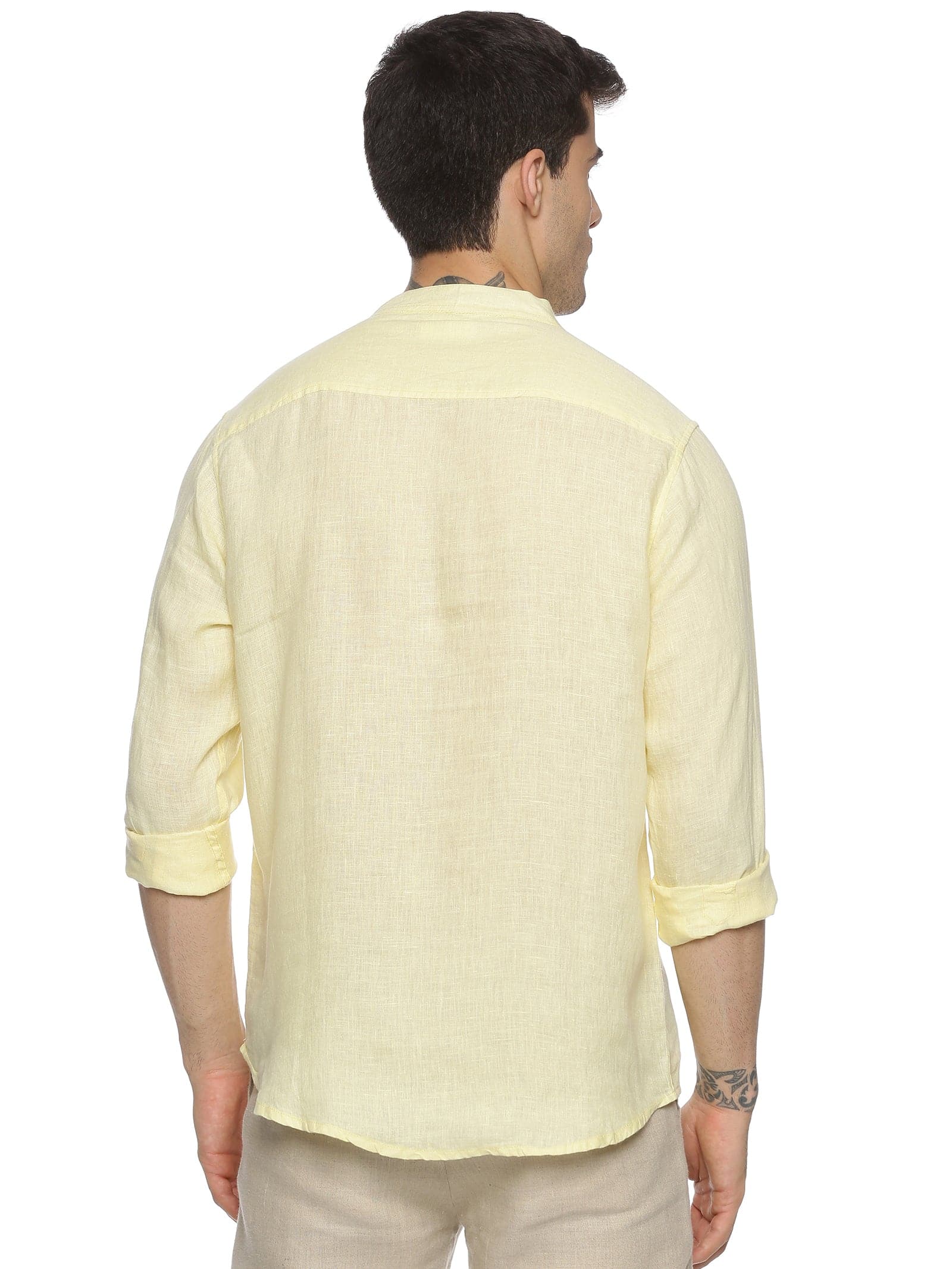 LINEN CENTRE PLACKET MANDARIN COLLAR PALE BANANA SHIRT