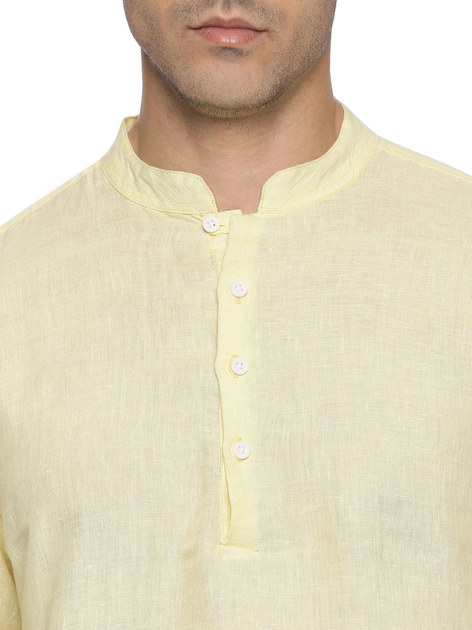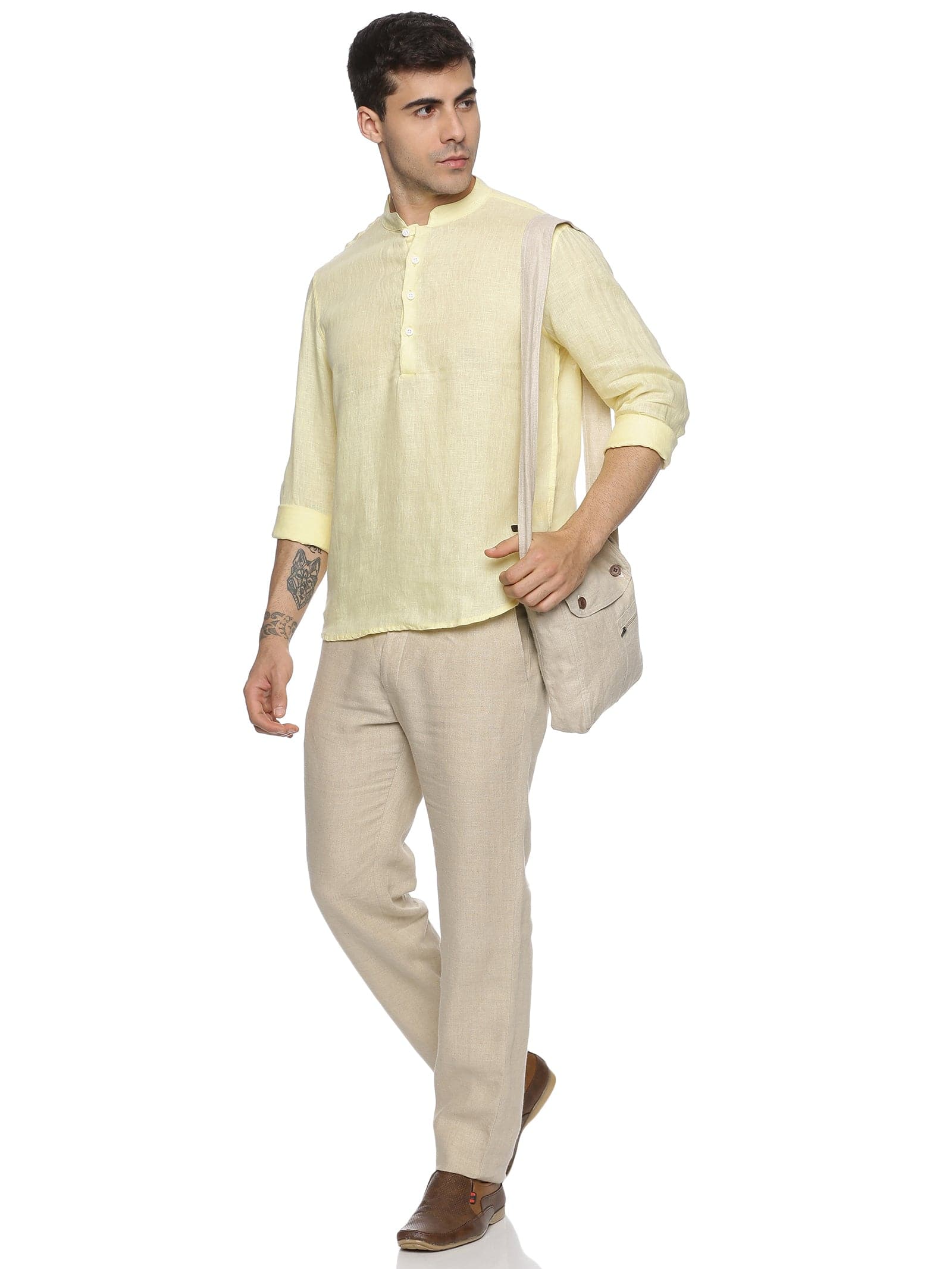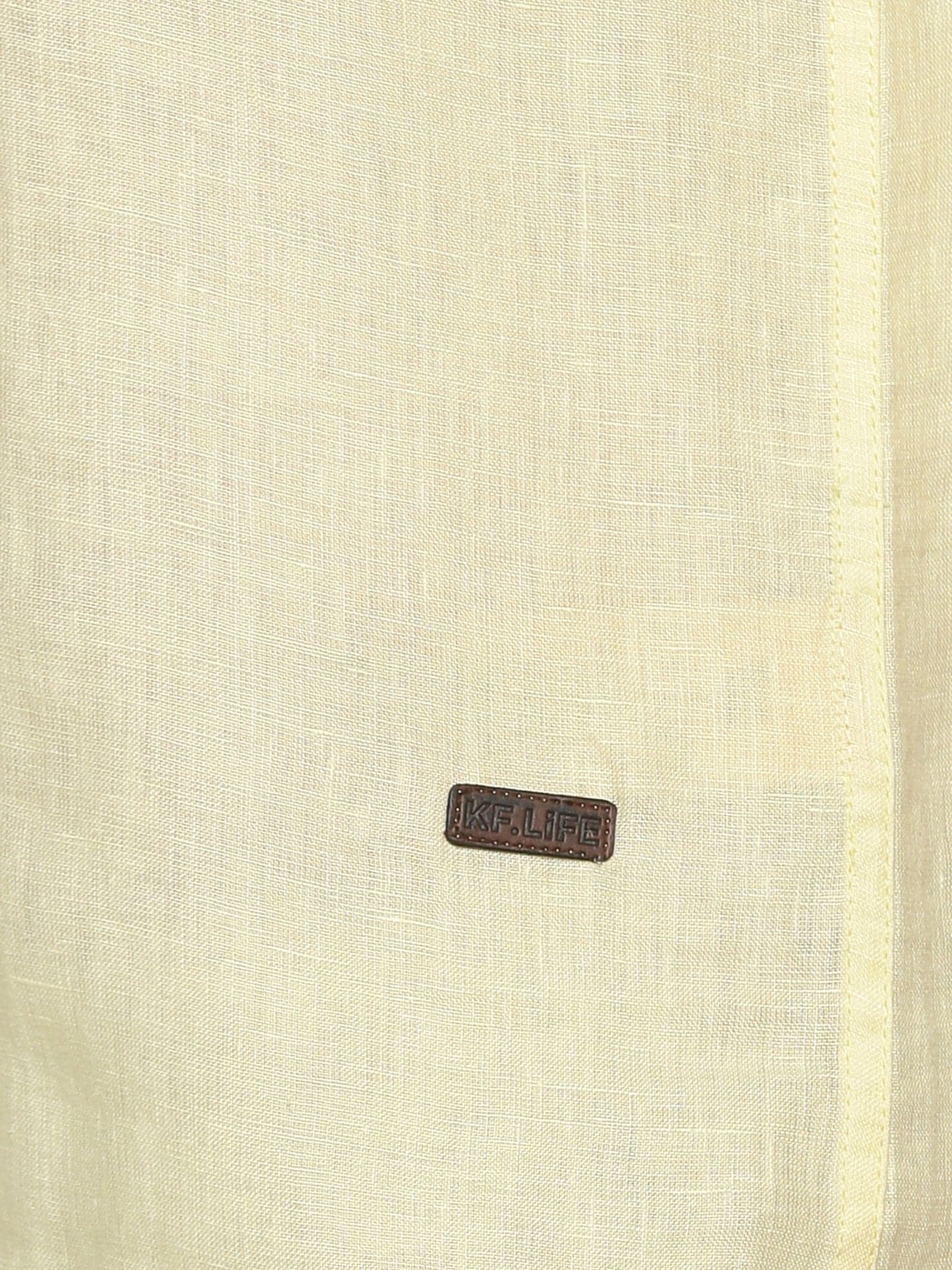 LINEN CENTRE PLACKET MANDARIN COLLAR PALE BANANA SHIRT