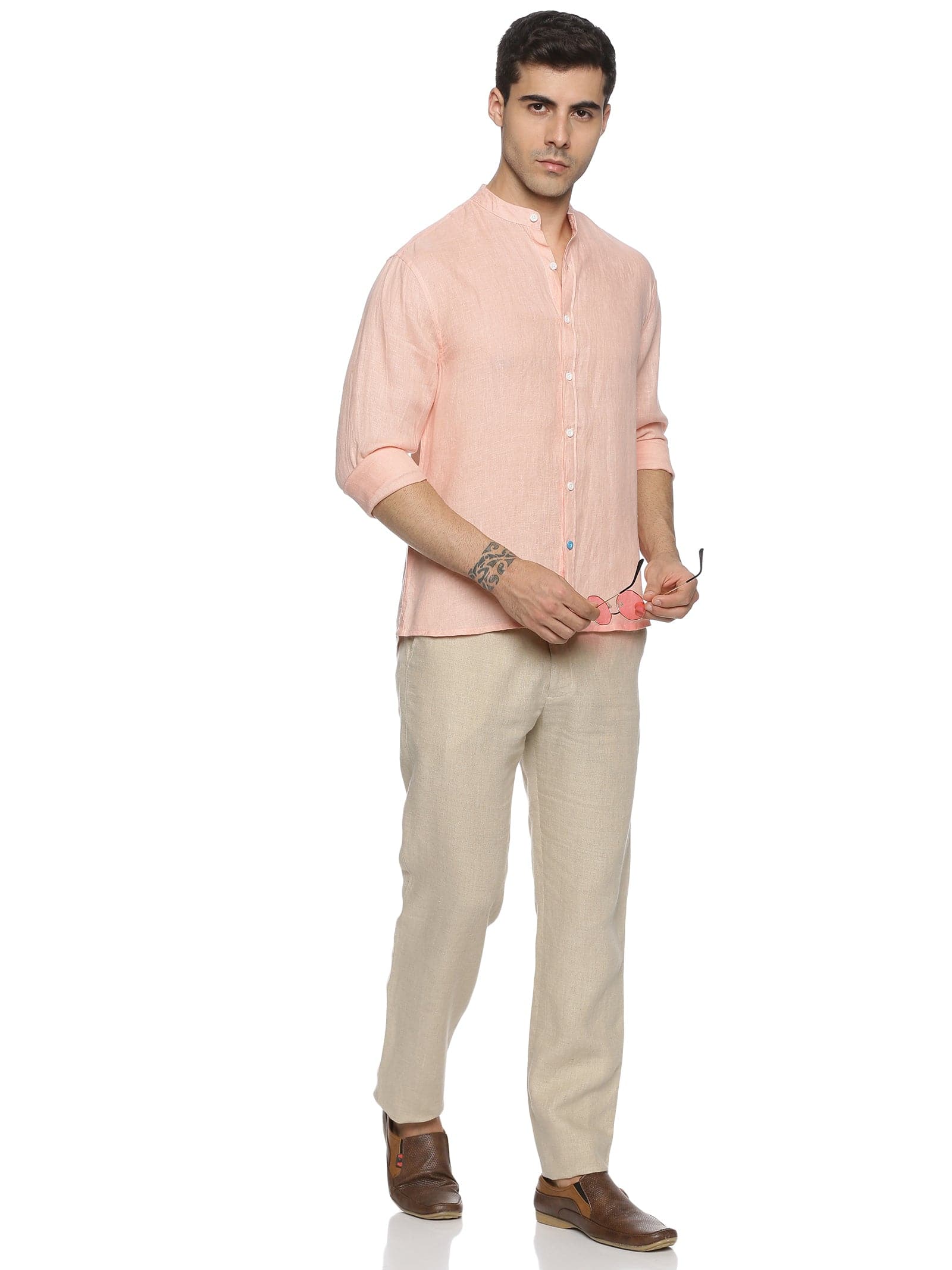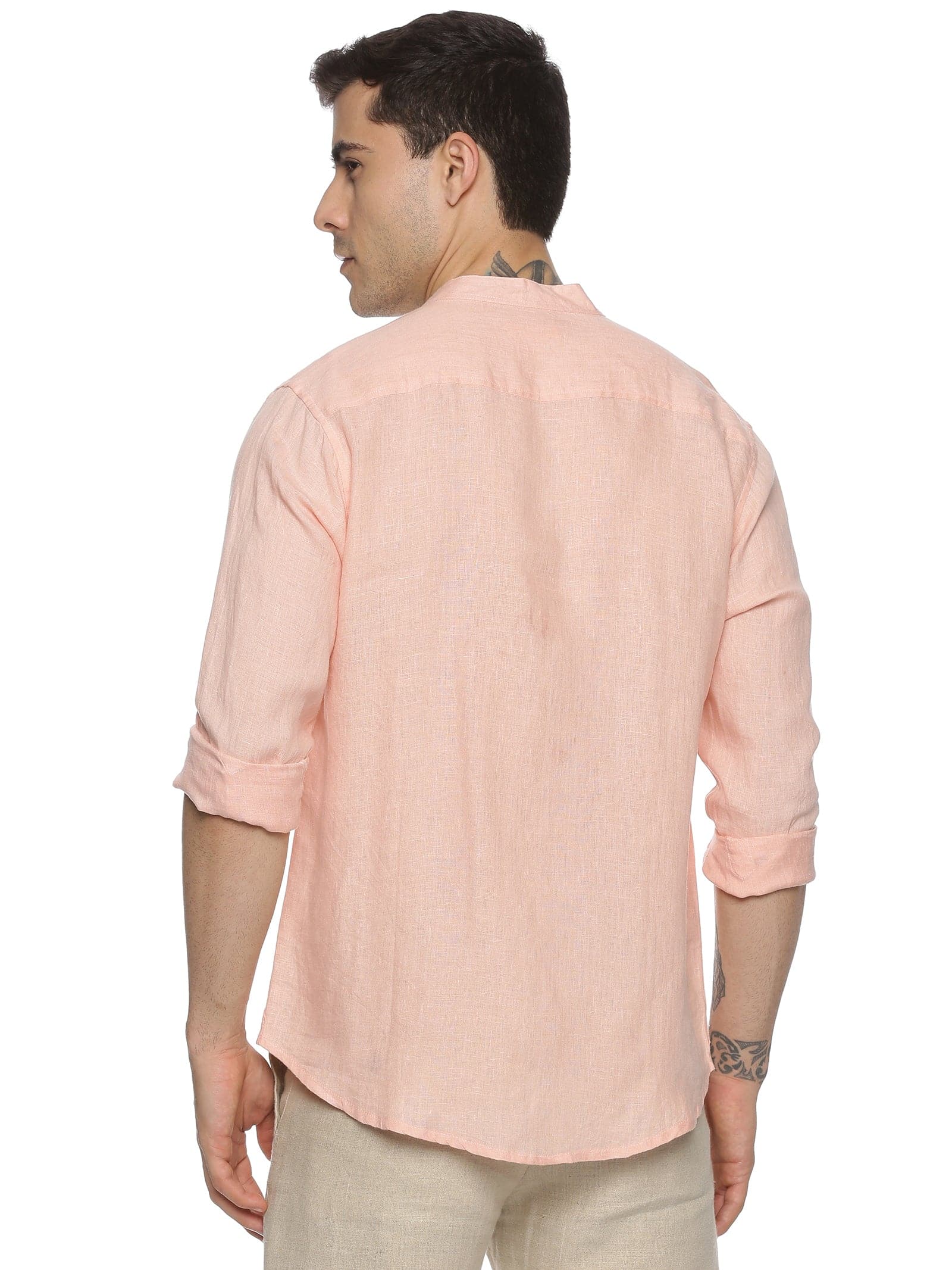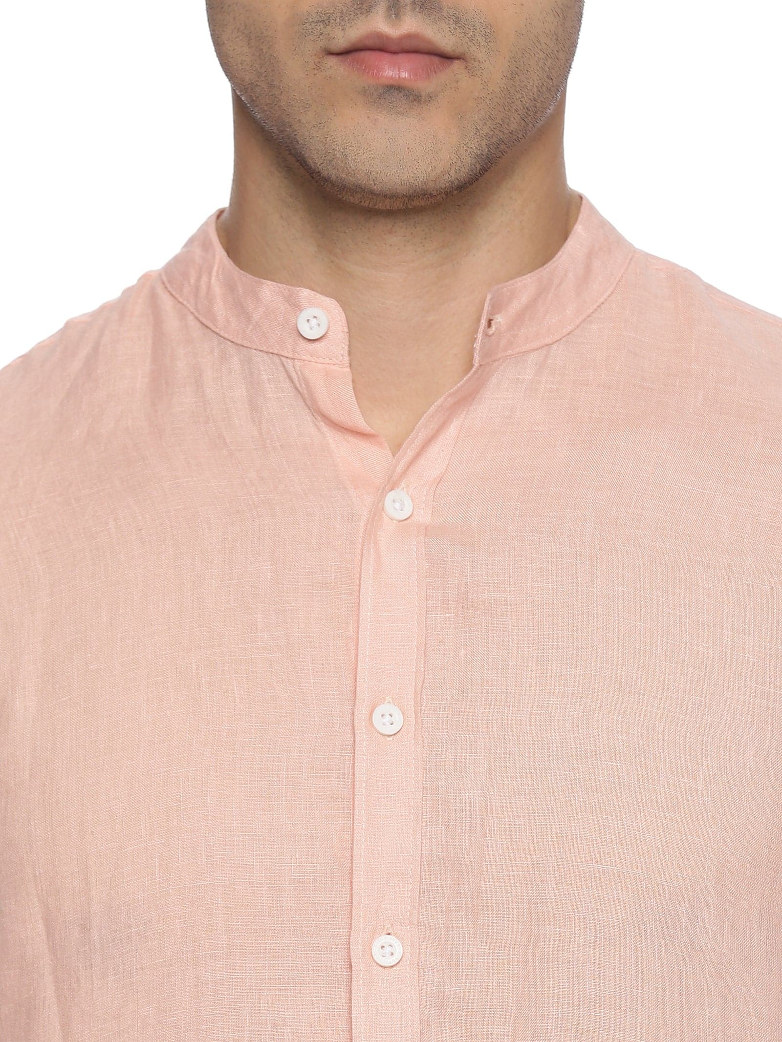 LINEN MANDARIN COLLAR DUSTY PEACH SHIRT